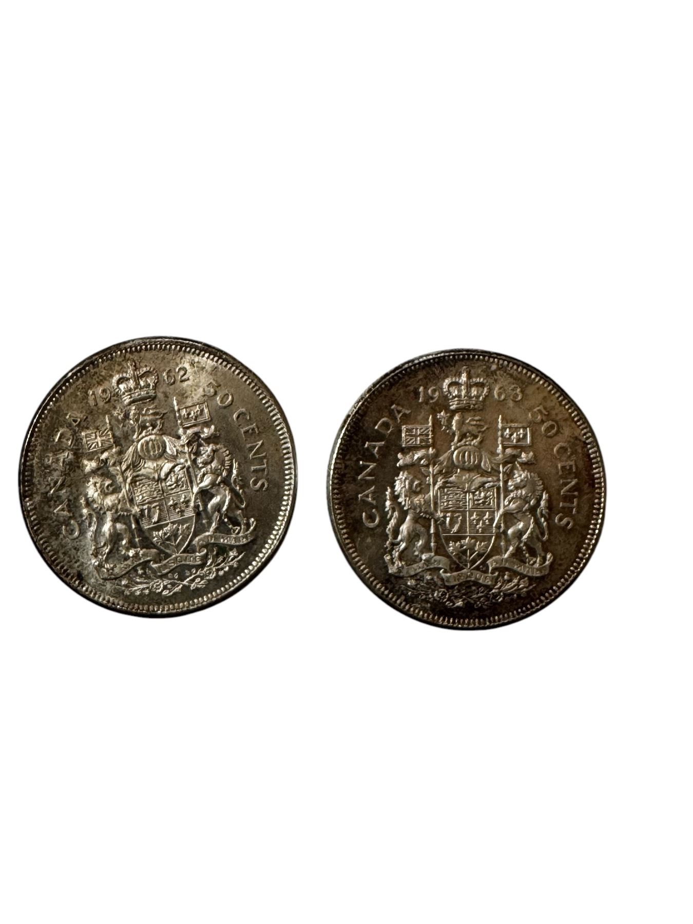 2 Canadian Silver 50 Cent Coins: 1962 & 1963