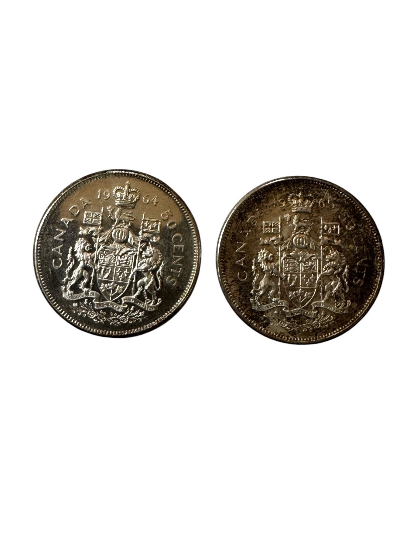 2 Canadian Silver 50 Cent Coins: 1964 & 1965