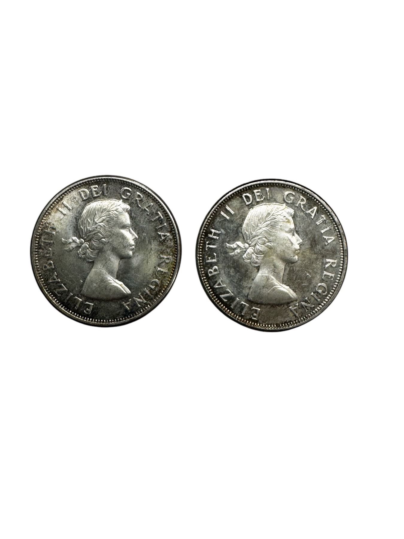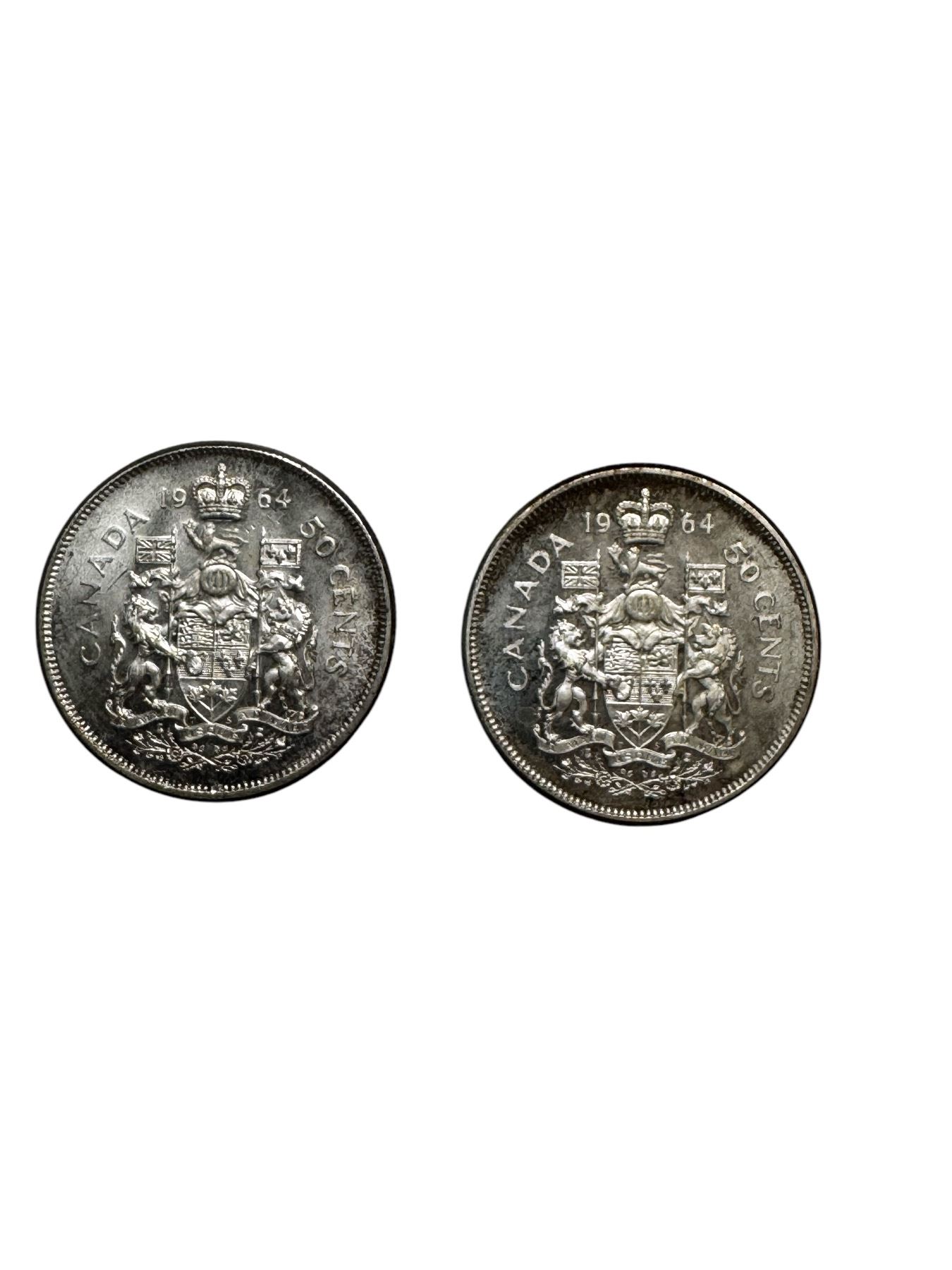 2 Canadian Silver 50 Cent Coins: 1964