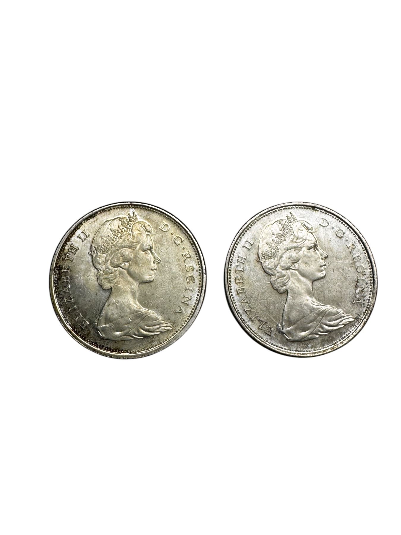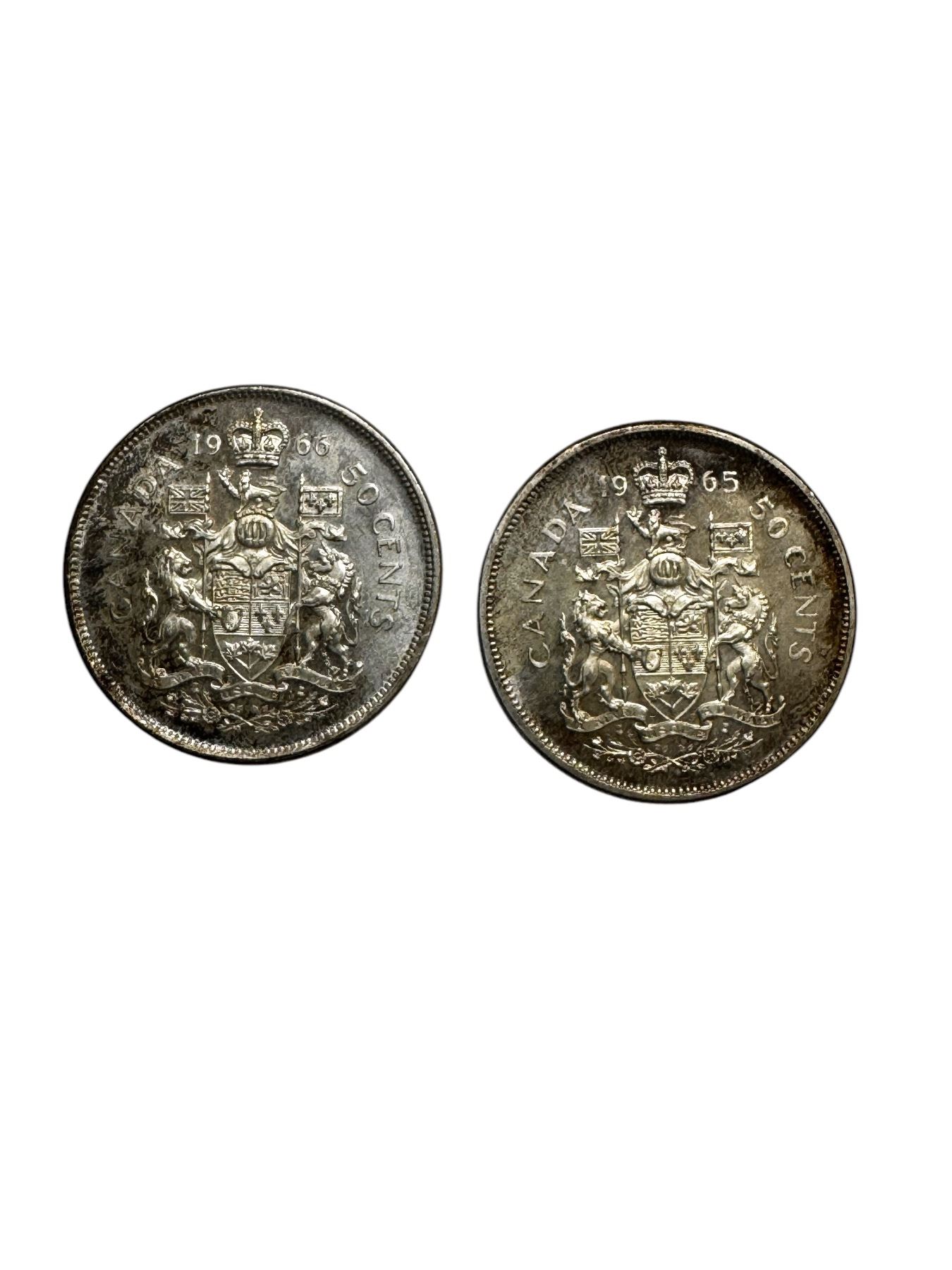 2 Canadian Silver 50 Cent Coins: 1965 & 1966
