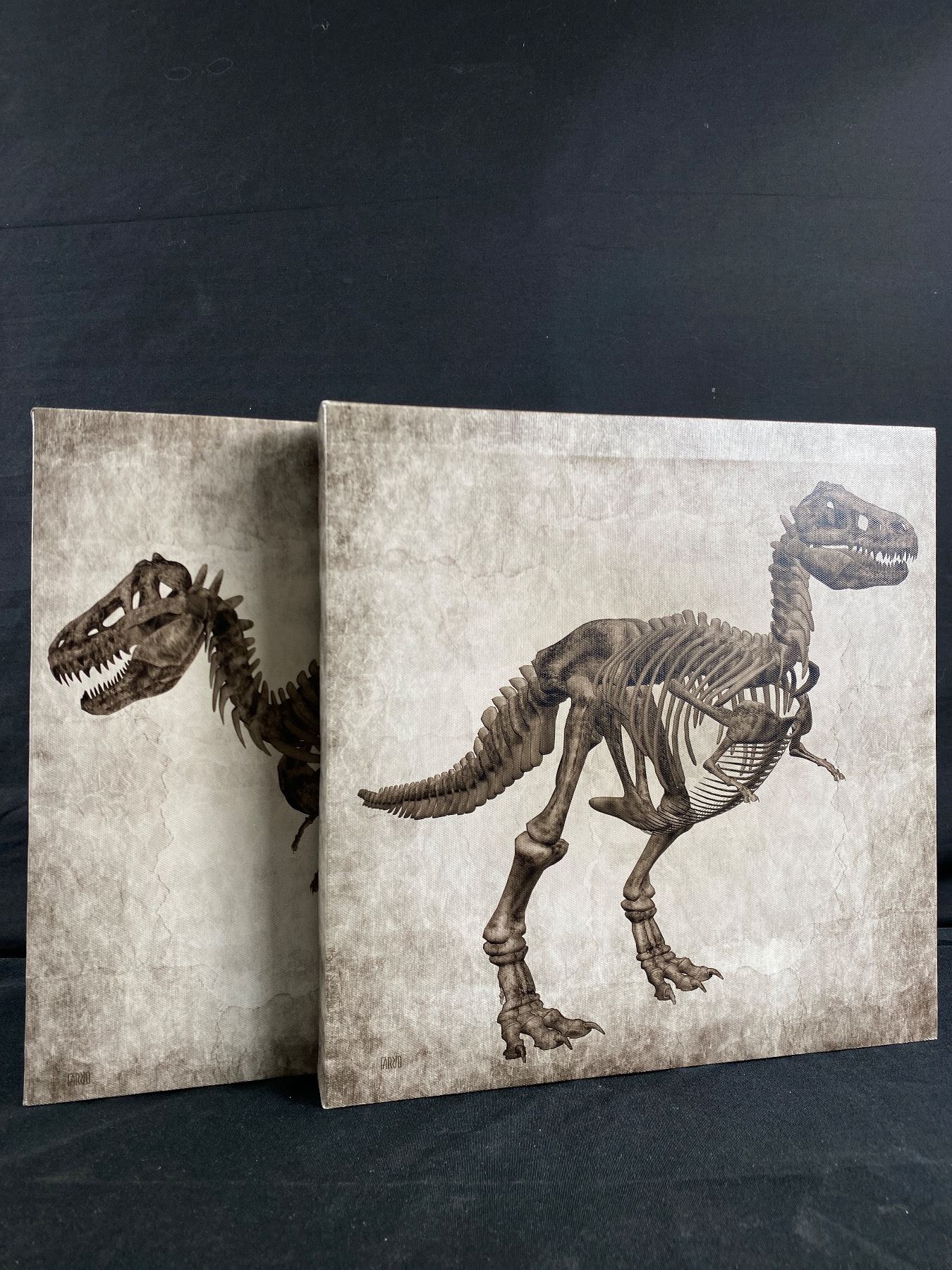 2 Canvas Dinosaur Pictures. Approx. 12" x 12" Each