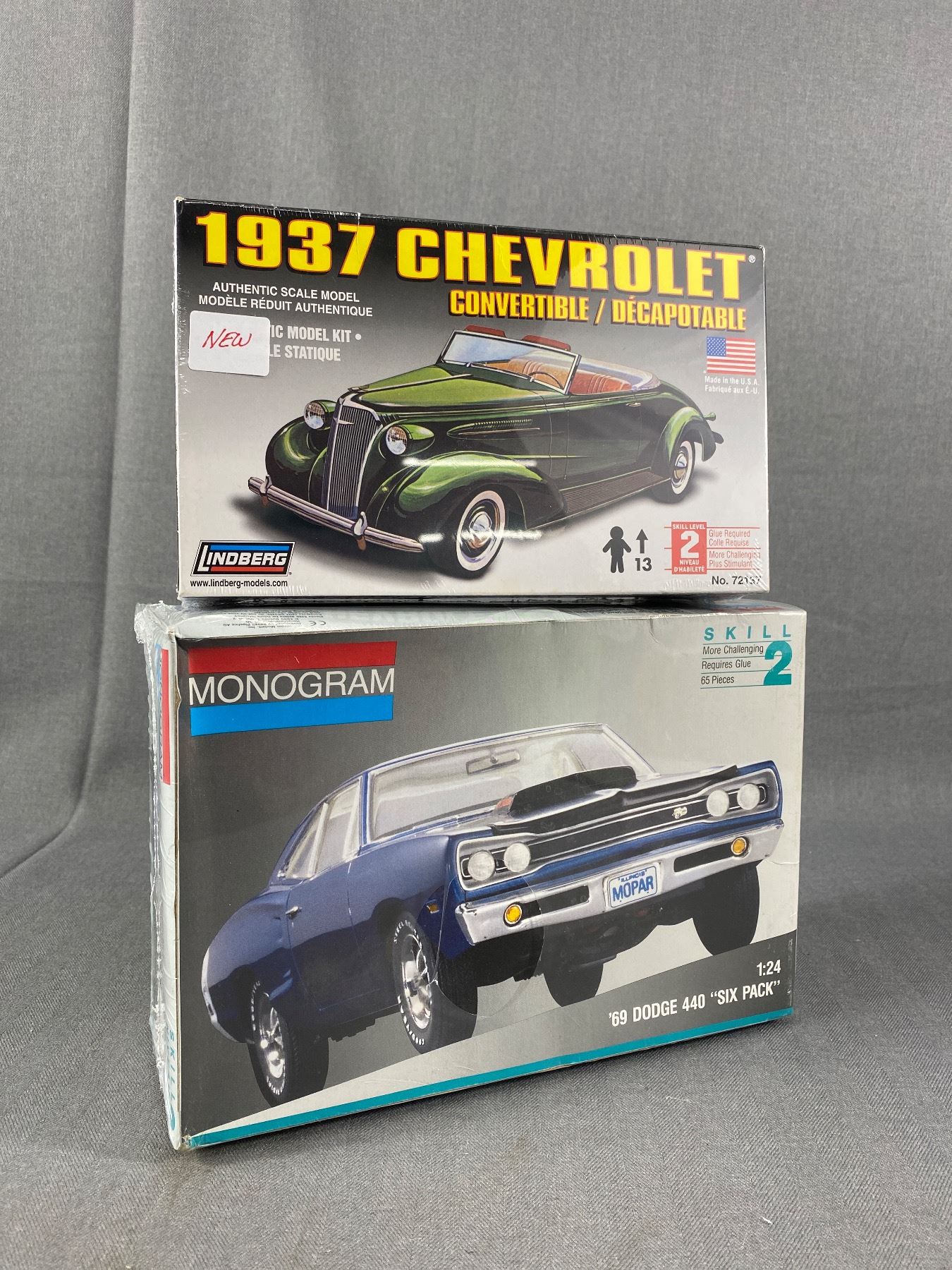 2 Car Models In Sealed Boxes - 1/32 Scale '37 Chevorlet Convertible & 1/24 Scale '69 Dodge 440 "Six Pack"