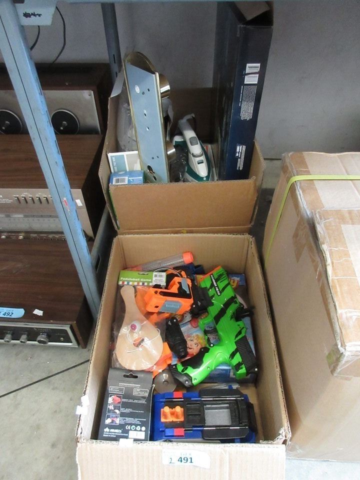 Nerf gun, paddle ball, iron, light fixtures & more.