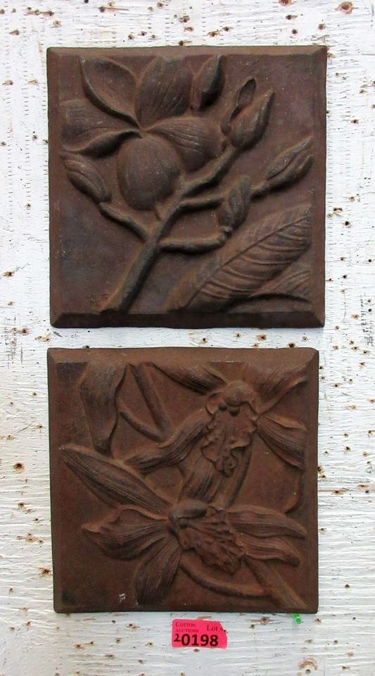 2 Cast Metal Garden Wall Art Tiles -10  x 10