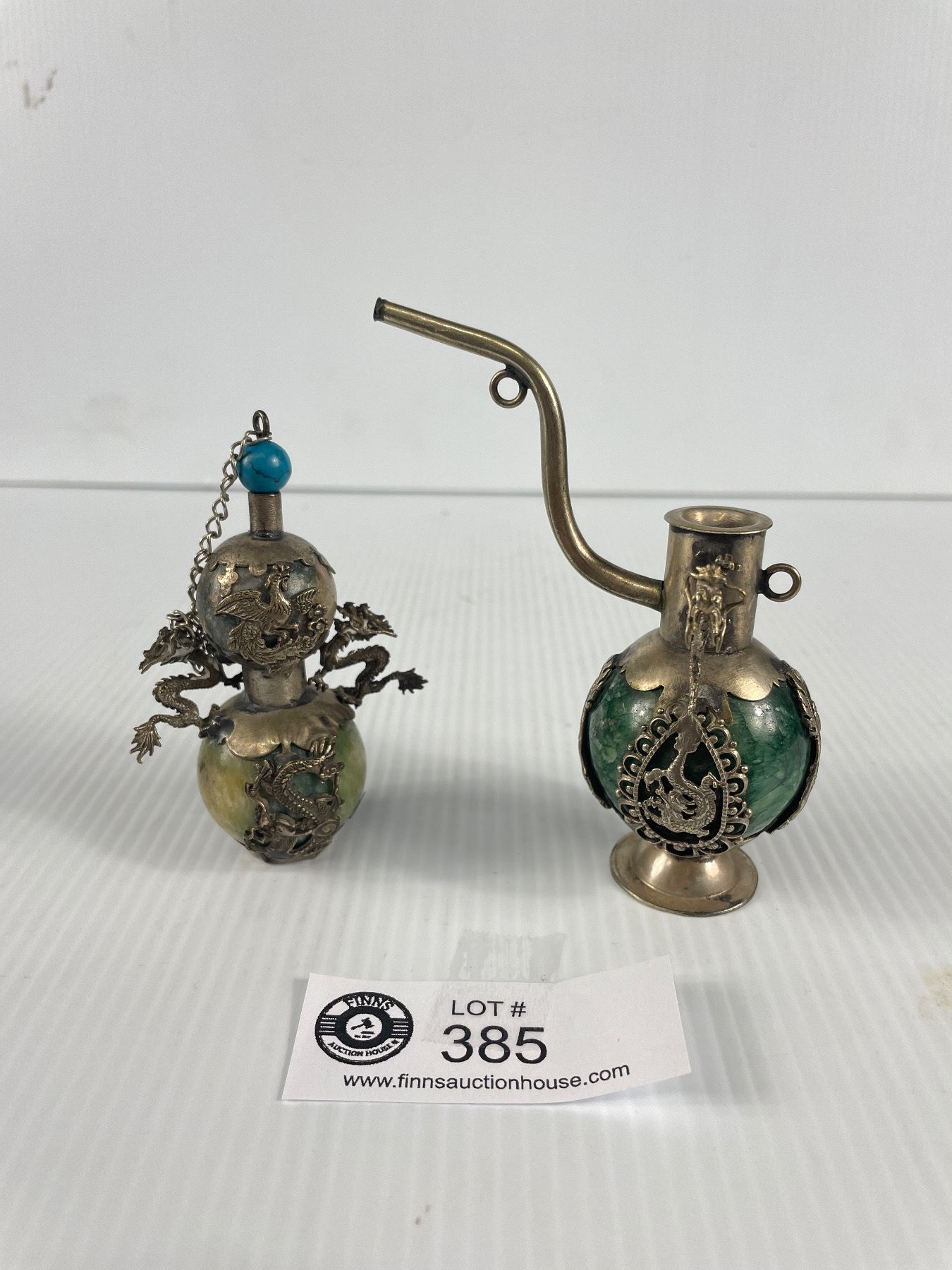2 Chinese Stone & Silver Metal Snuff Bottles