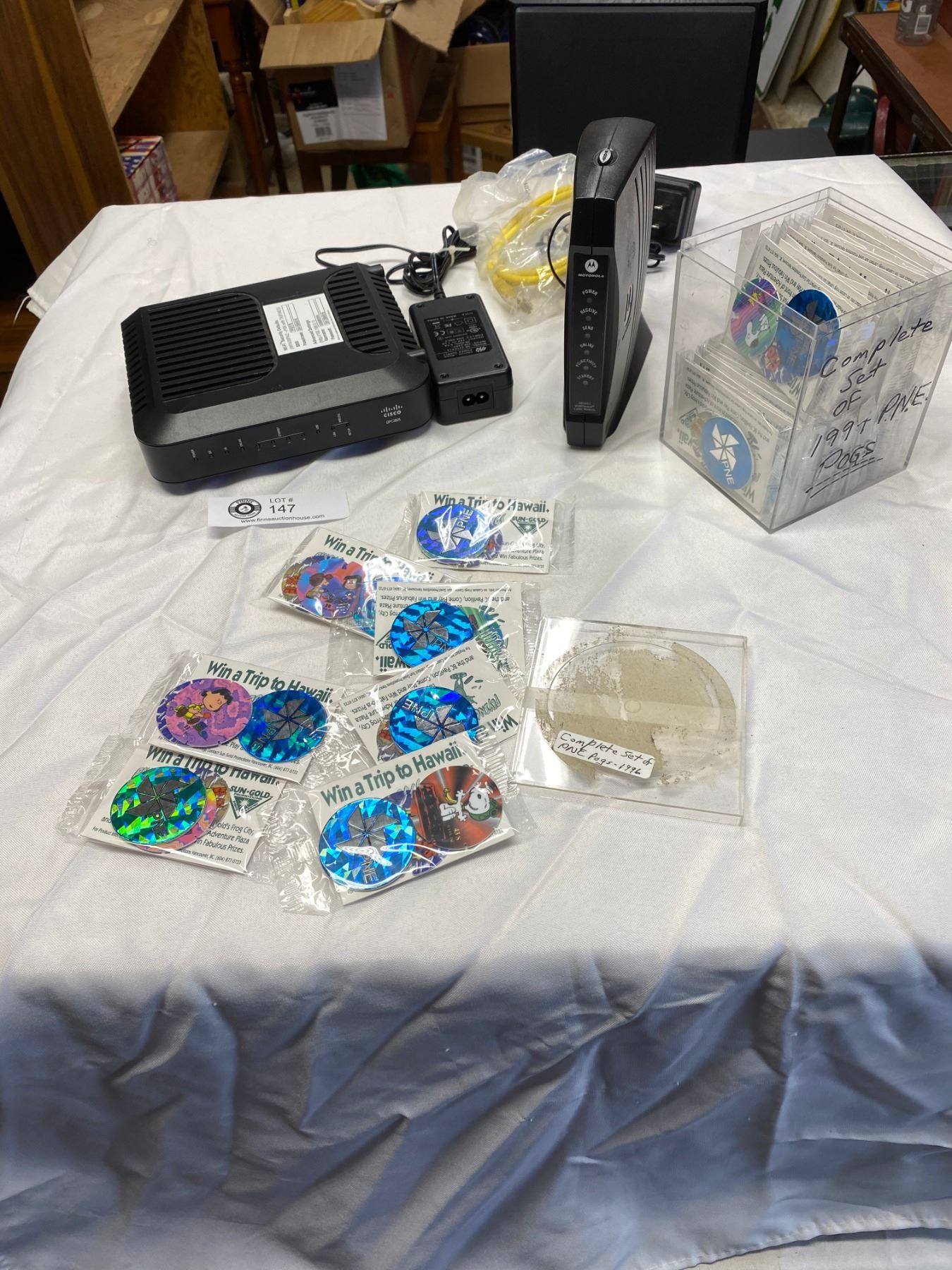 2 Computer Routers Plus 1 set of 1996 PNE Collector Pogs