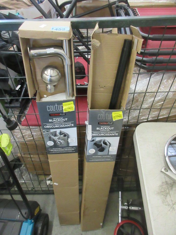 1 brushed nickel and 1 black. Adjustable 48-96". Customer returns. As Is.