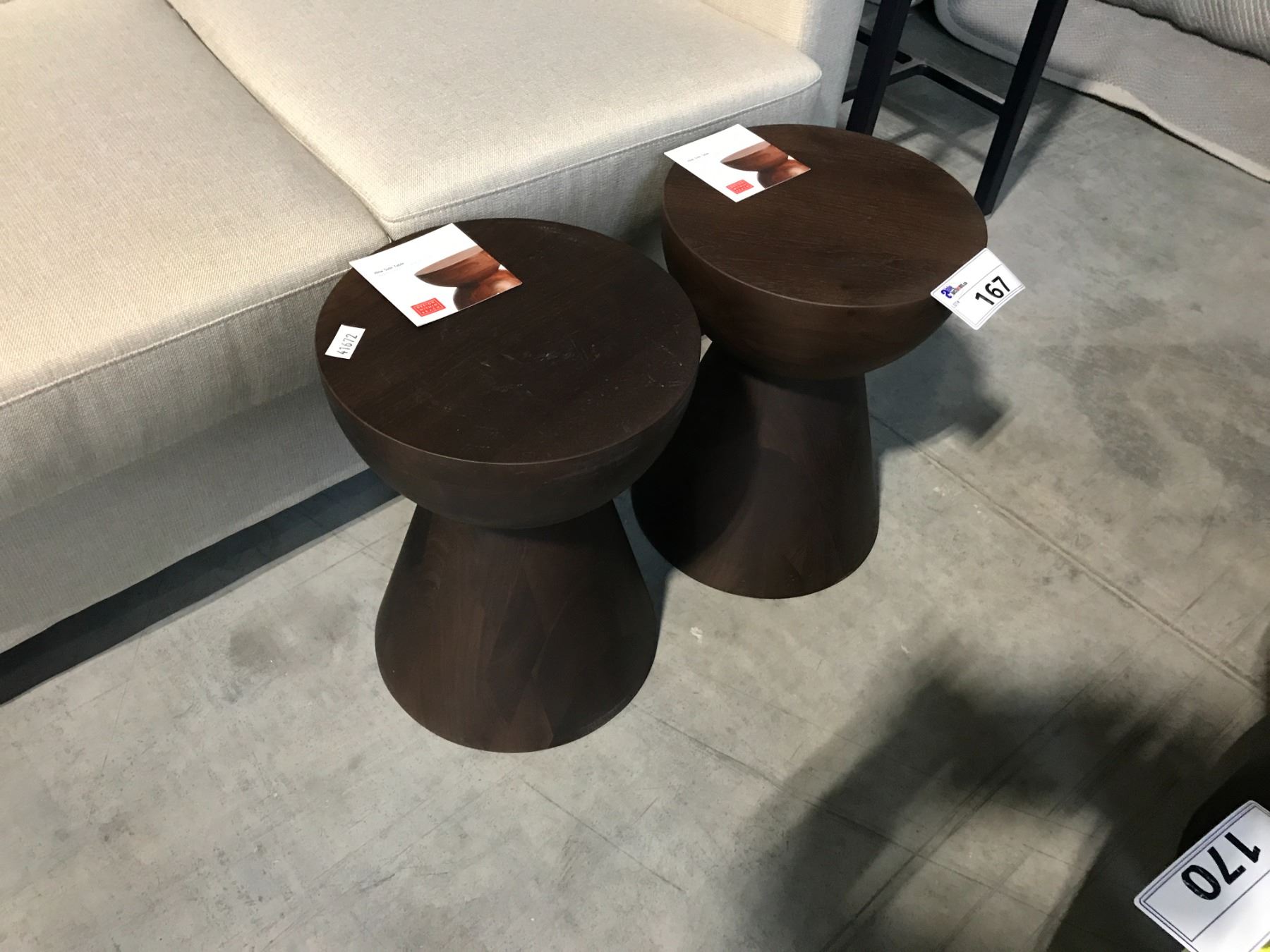 2 DESIGN WITHIN REACH HEW BLACK WALNUT 16"H SIDE TABLES/STOOLS