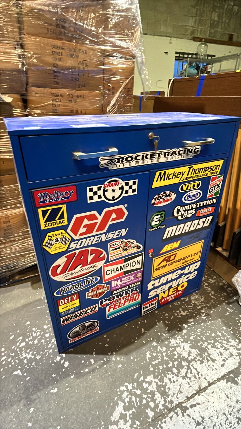 2-DOOR 1-DRAWER METAL SHOP CABINET WITH KEYS 32" X 14" X 36"