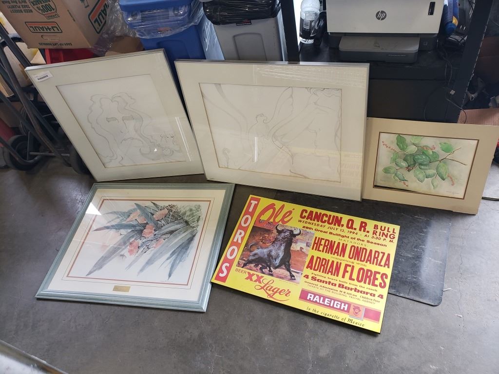 2 DRAWINGS, WATERCOLOR AND PRINTS