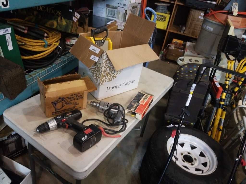 2 DRILLS, BATTERY CHARGER, HAND SAW