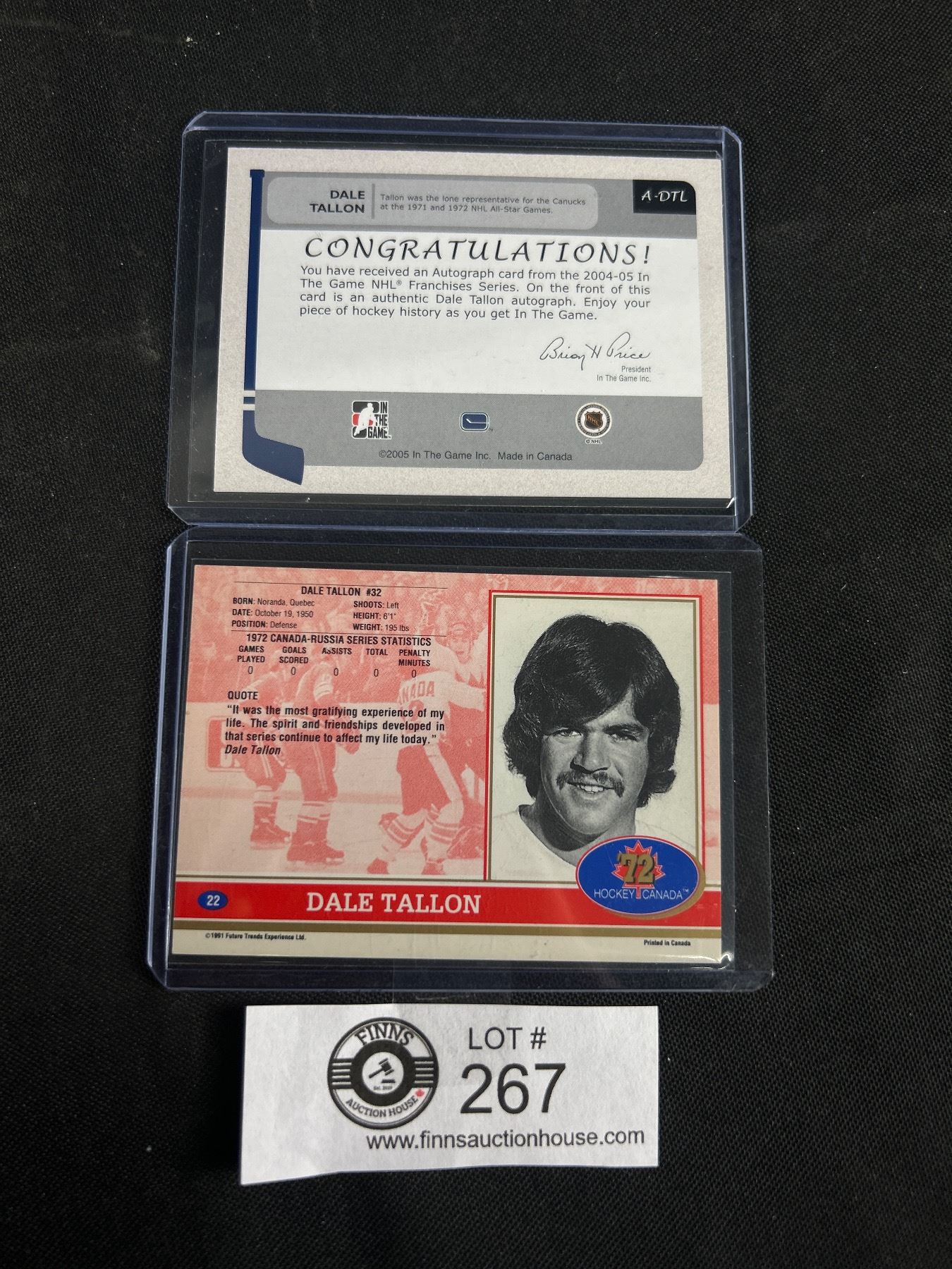 2 - Dale Tallon Signed NHL Cards - 2005 In The Game & 1991 Future Trends