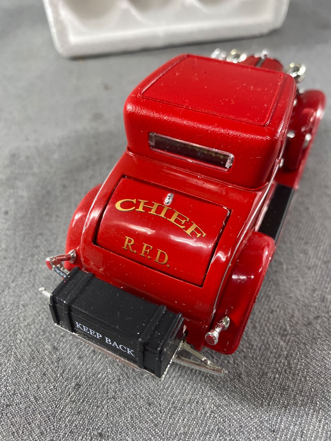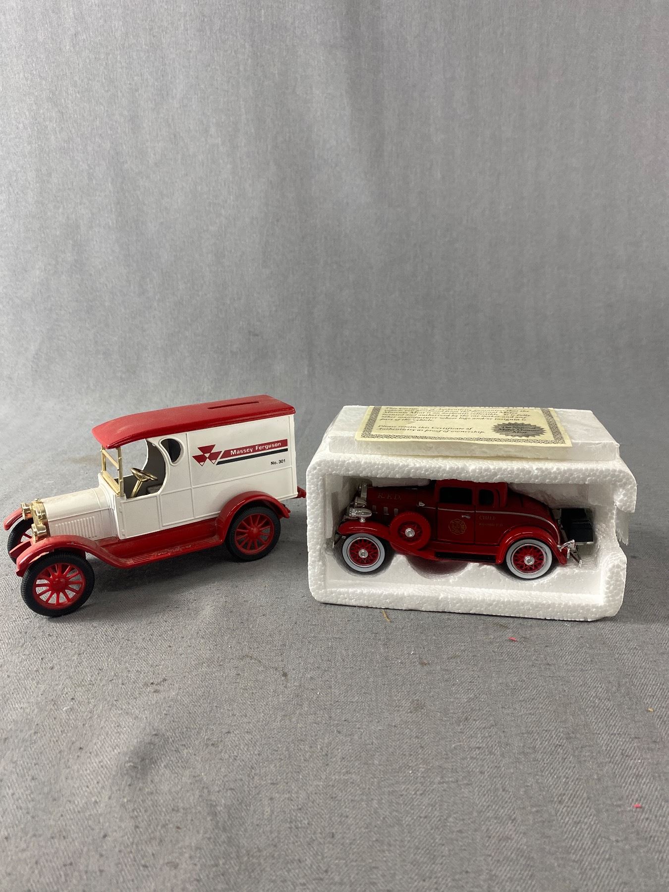 2 Die-Cast Metal Collectibles - ERTL Replica Chevrolet "Massey Ferguson" 1923 Delivery Van Bank & 1932 Confederate Series Fire Chief Vehicle