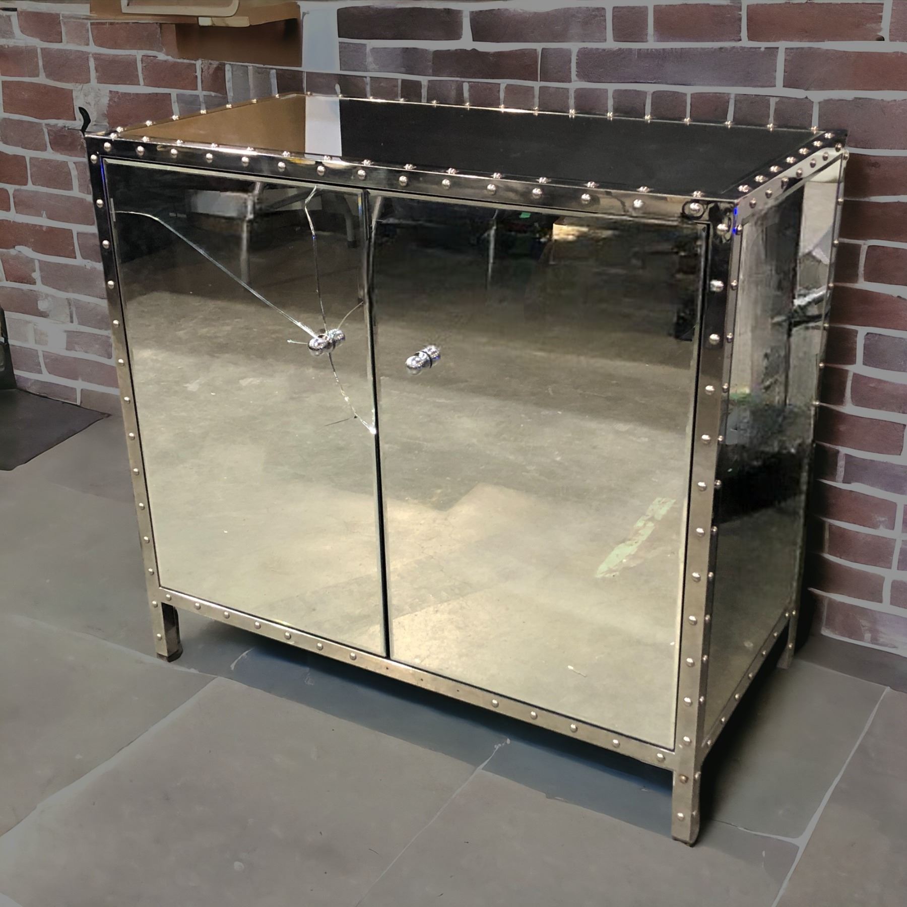 2 Door Mirrored Accent Cabinet (has a crack on the left cabinet)