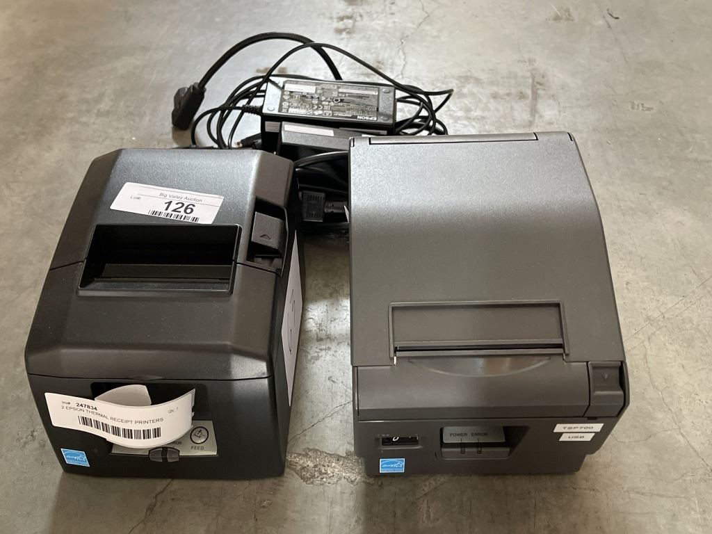 2 EPSON THERMAL RECEIPT PRINTERS MODEL TM-650 AND TM-700 WITH POWER ADAPTERS