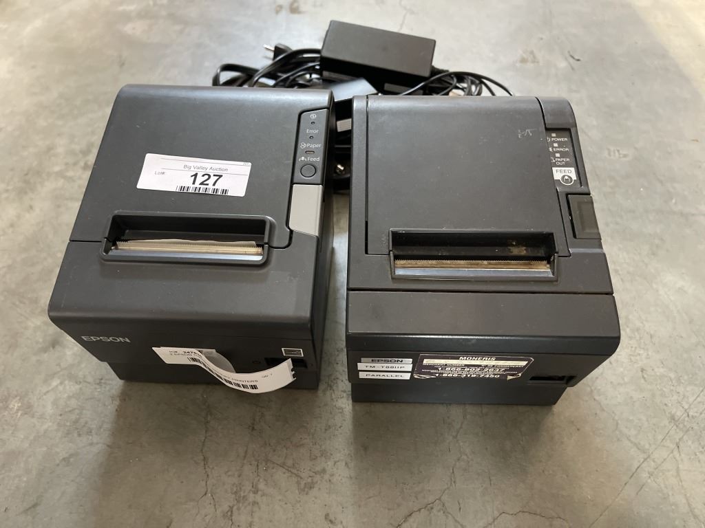 2 EPSON THERMAL RECEIPT PRINTERS MODEL TM-88V AND TM-8811P WITH POWER ADAPTERS