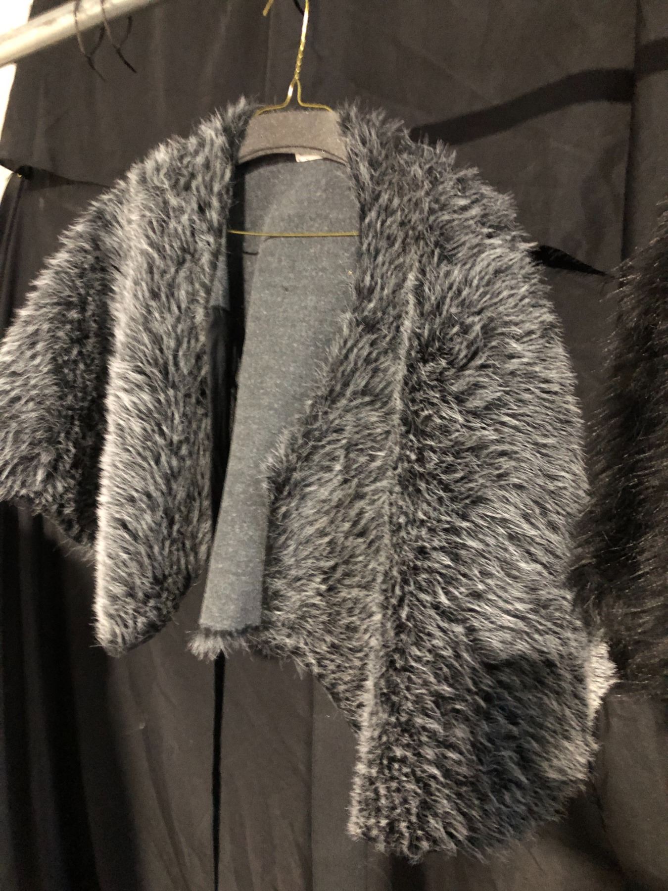 2 FAUX FUR GREY AND BLACK SHAWLS