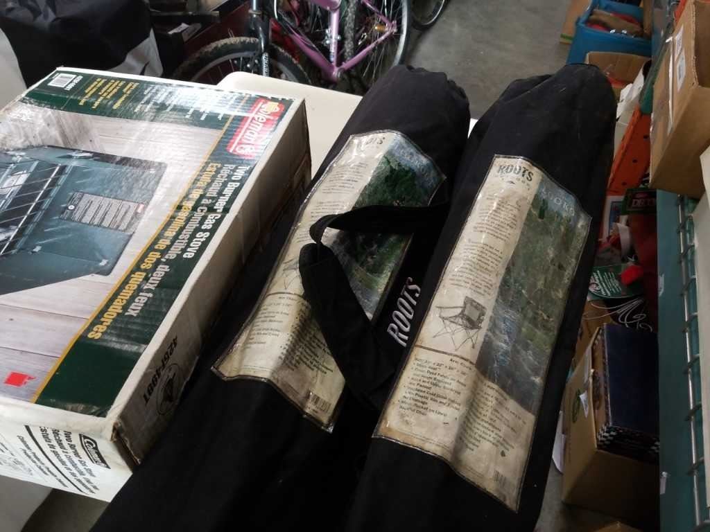 2 FOLDING CAMP CHAIRS AND COLEMAN CAMP STOVE