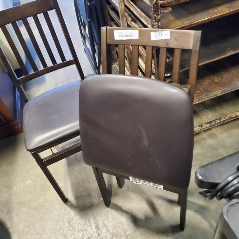 2 FOLDING CHAIRS WITH BROWN LEATHER SEAT