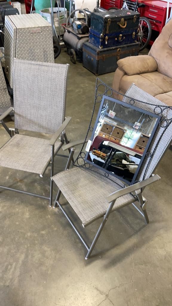 2 FOLDING PATIO CHAIRS AND MIRROR