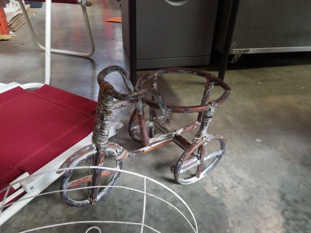 2 FOLDING PATIO CHAIRS, PLANTERS, BENTWOOD BIKE