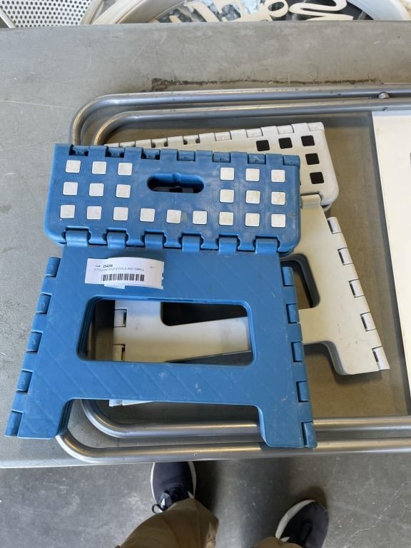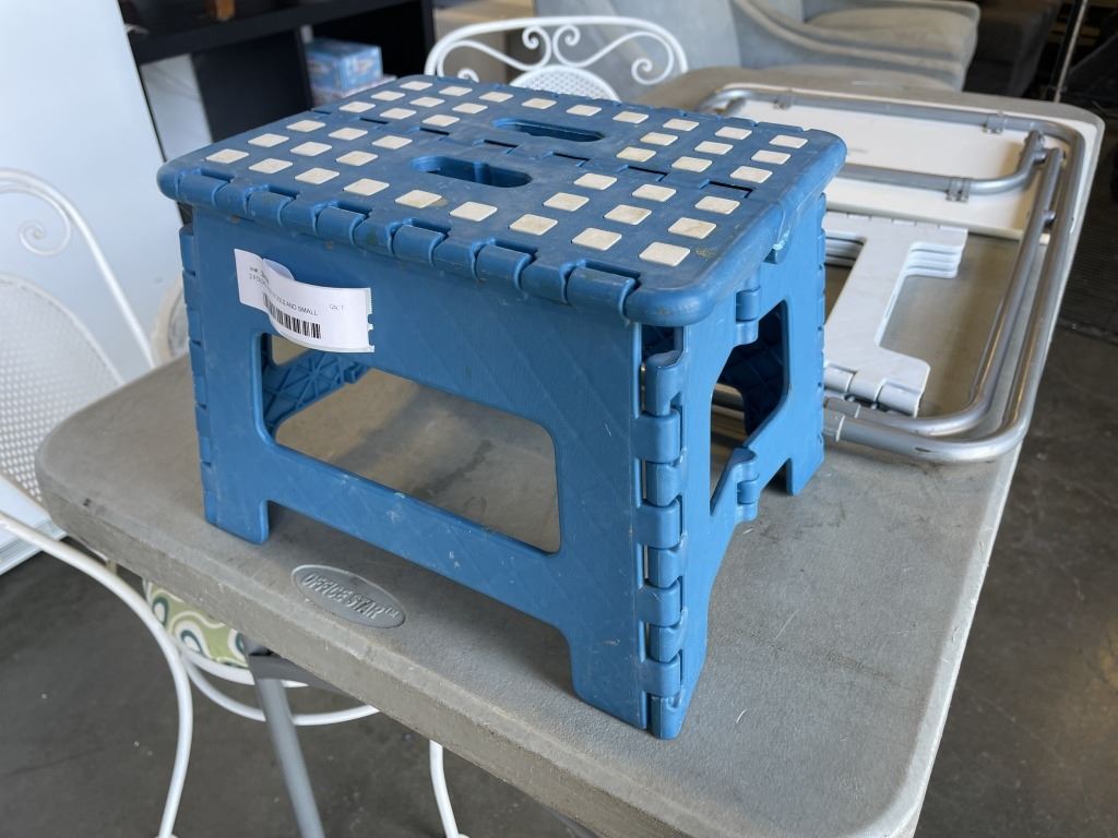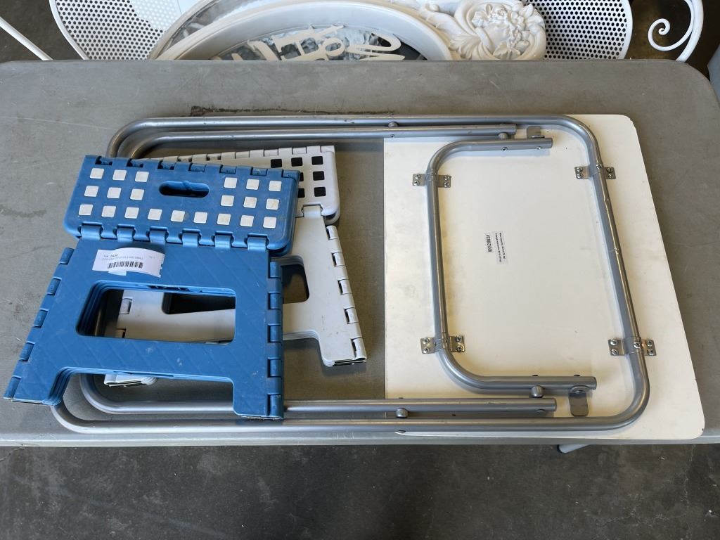 2 FOLDING STEP STOOLS AND SMALL FOLDING TABLE