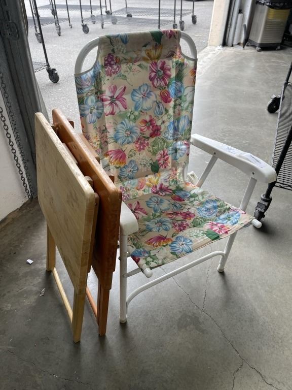 2 FOLDING TV TRAYS AND FOLDING PATIO CHAIR