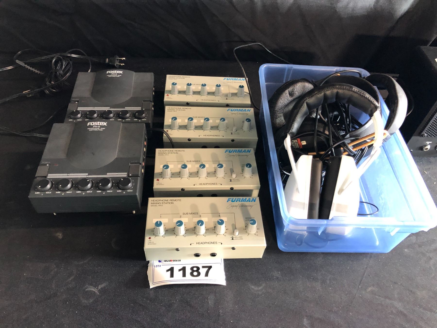 2 FOSTEX PH5 HEADPHONE AMP DISTRIBUTORS, 4 FURMAN HR6 HEADPHONE MIXERS AND MISC. HEADPHONES