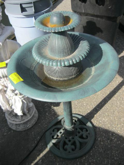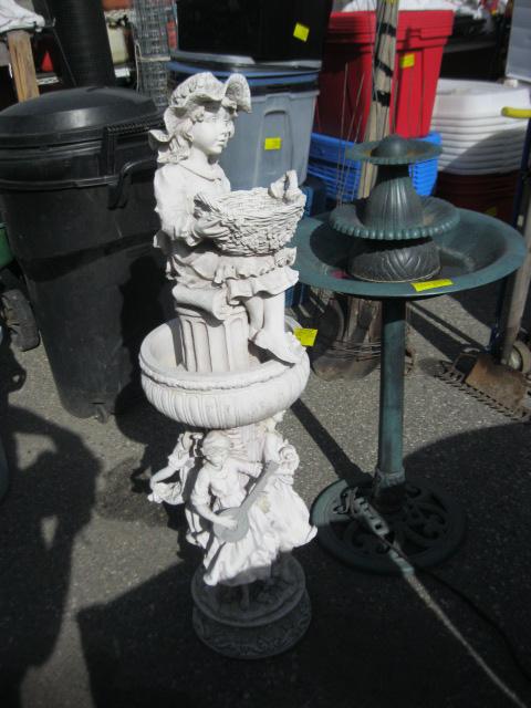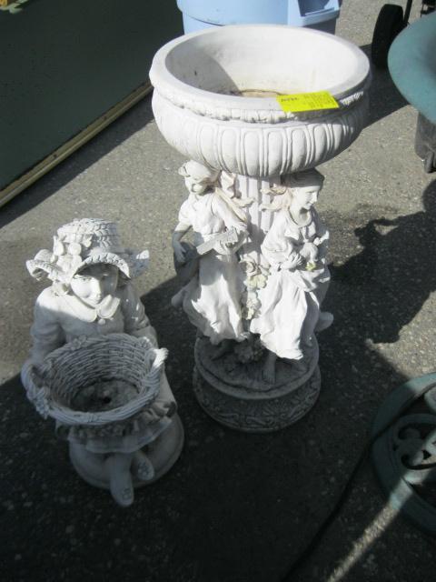2 GARDEN PIECES - FOUNTAIN/BIRD BATH W/ELECTRIC PUMP & A DECORATIVE FIGURINE (DAMAGED)