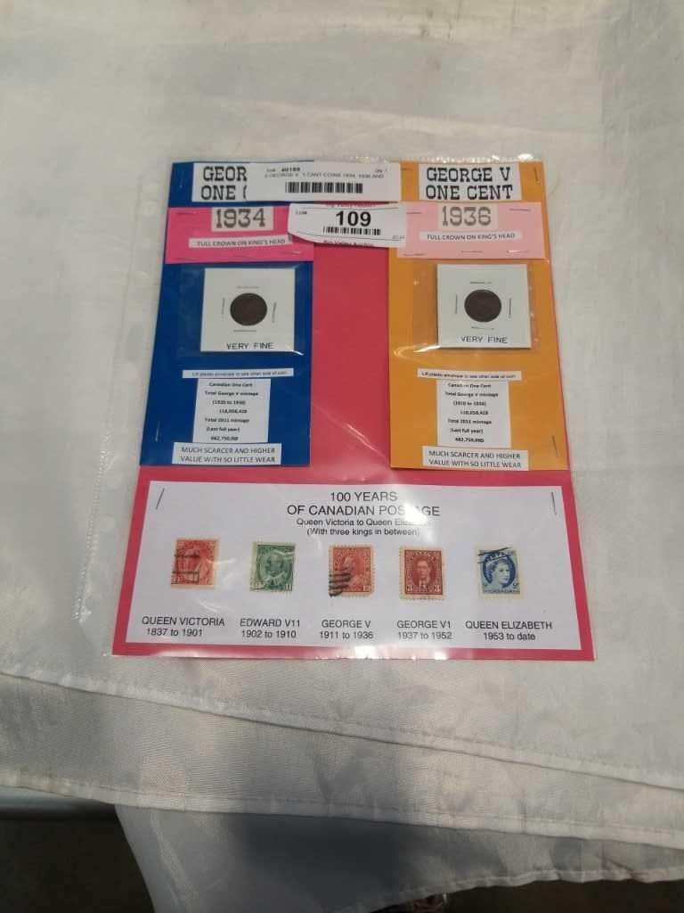 2 GEORGE V 1 CANT COINS 1934, 1936 AND POSTAGE