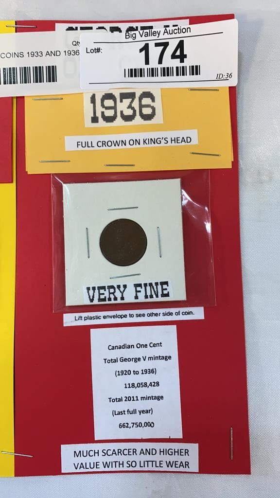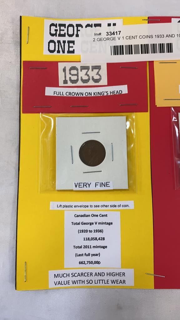 2 GEORGE V 1 CENT COINS 1933 AND 1936