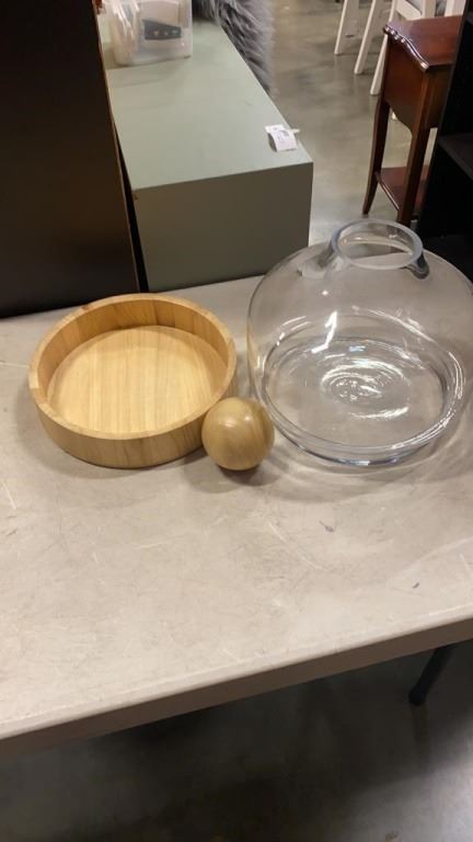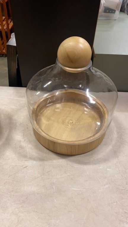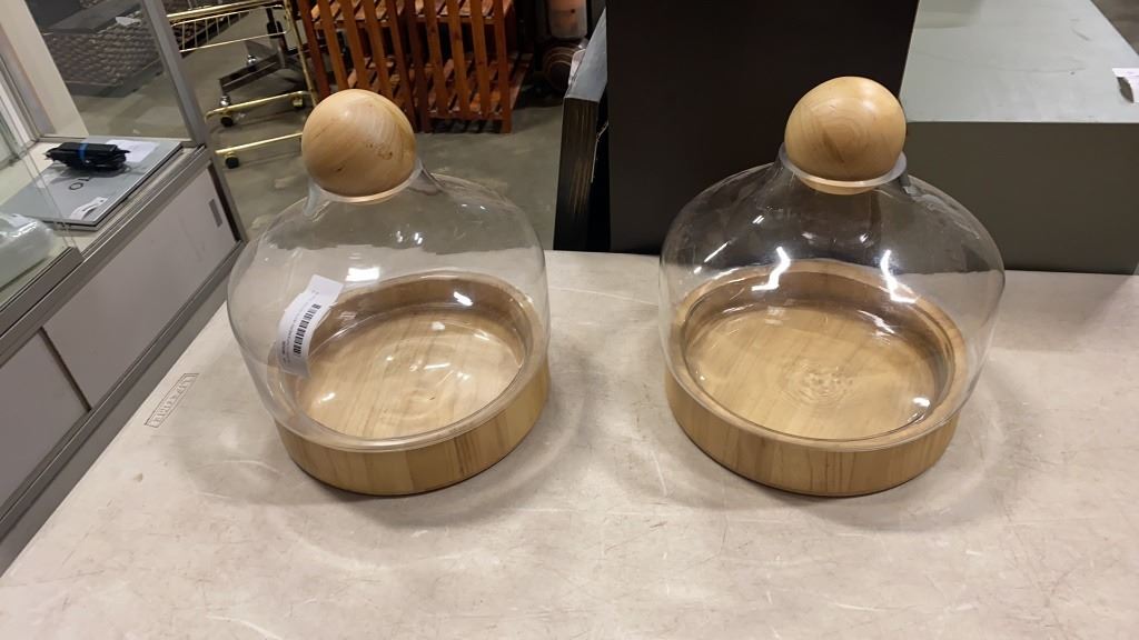 2 GLASS CONTAINERS WITH WOOD TRAYS AND STOPPERS