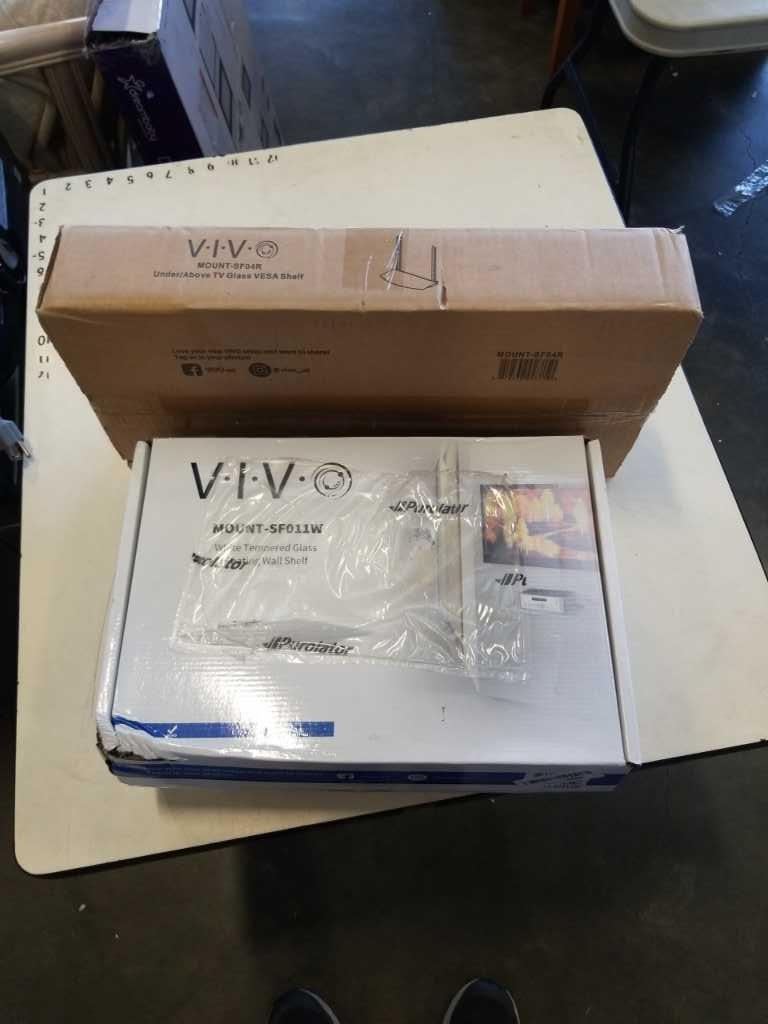 2 GLASS FLOATING SHELVES AND GLASS VESA SHELF