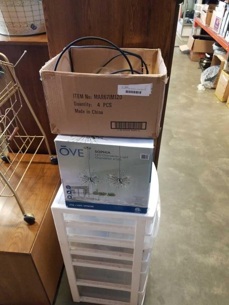 2 GLASS GLOBE PENDENT LIGHTS AND OVE CHANDELIER