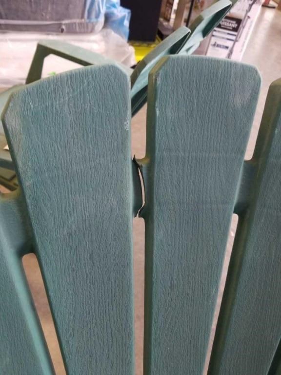 2 GREEN PLASTIC STACKING ADIRONDACK CHAIRS