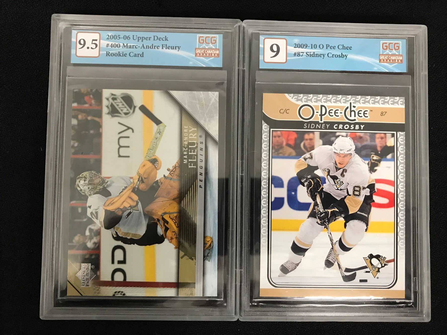 2 HIGH GRADE HOCKEY CARDS SIDNEY CROSBY GCG GRADED 9 AND 9.5