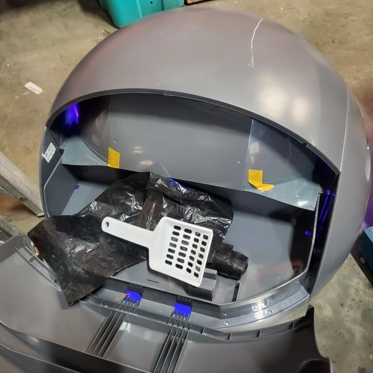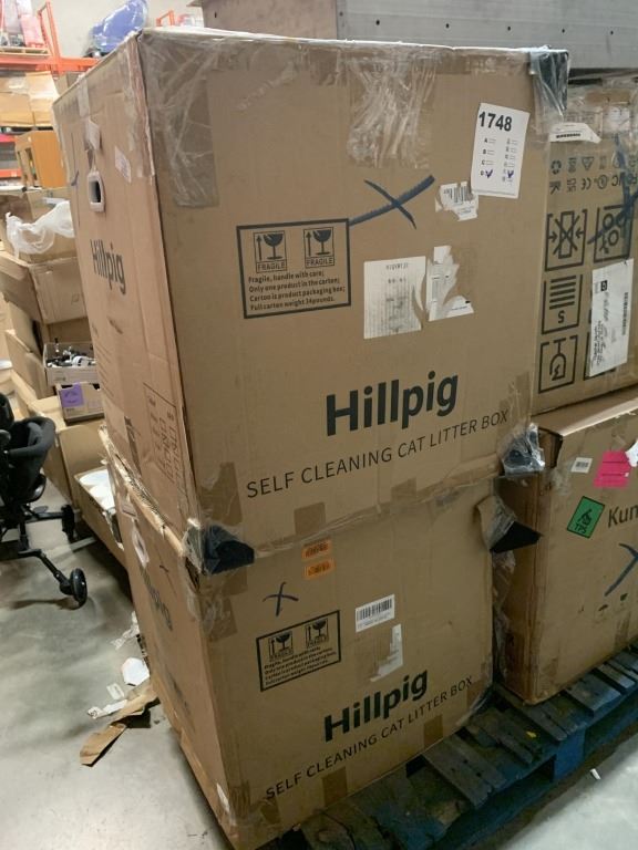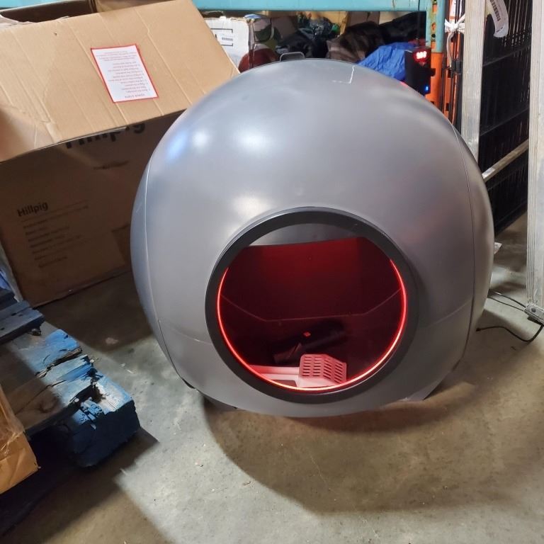 2 HILLPIG SMART CAT LITTER BOXES WORKING NEEDS LITTER TRAY AND STEP DRAWER CRACK IN TOP OF SHELL
