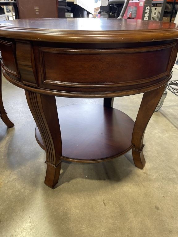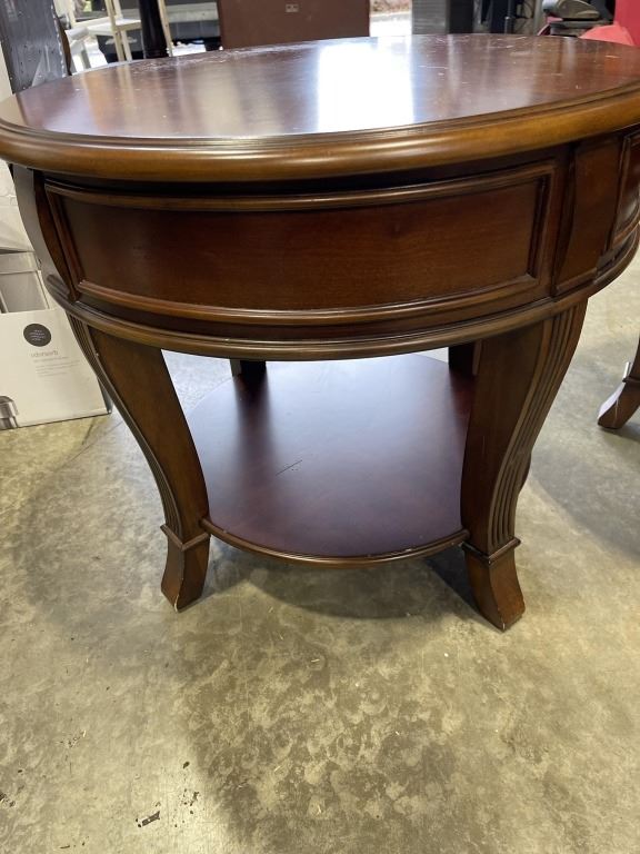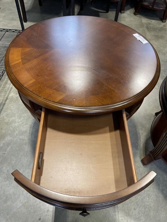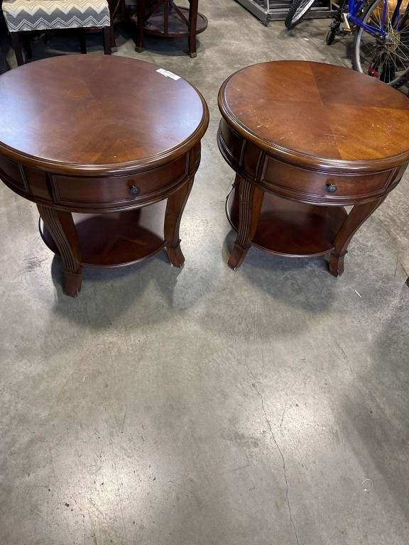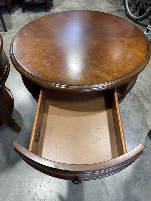2 HOOKER FURNITURE ROUND SIDE TABLES WITH DRAWER
