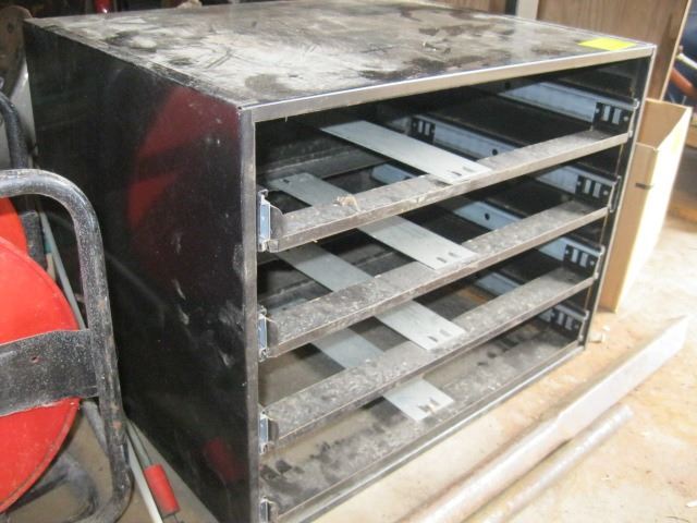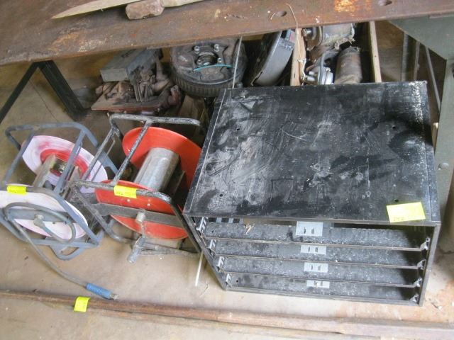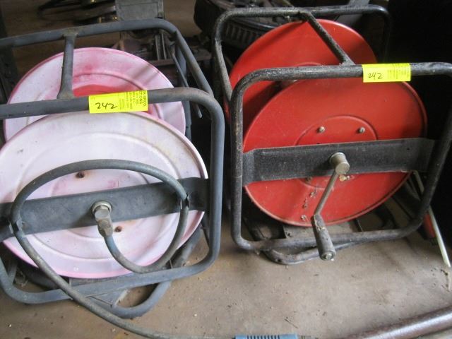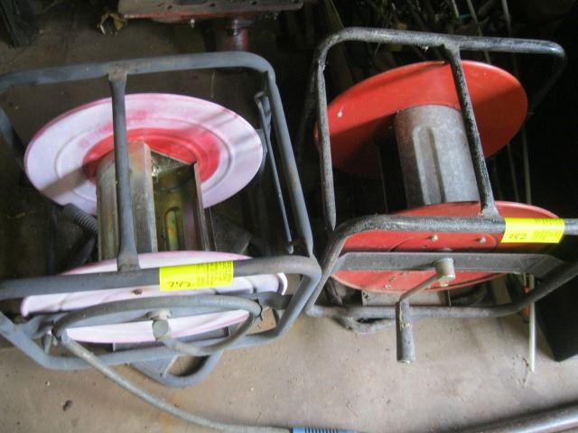 2 HOSE REEL WINDERS & BLACK DRAWER SLIDE CABINET, NO CASES
