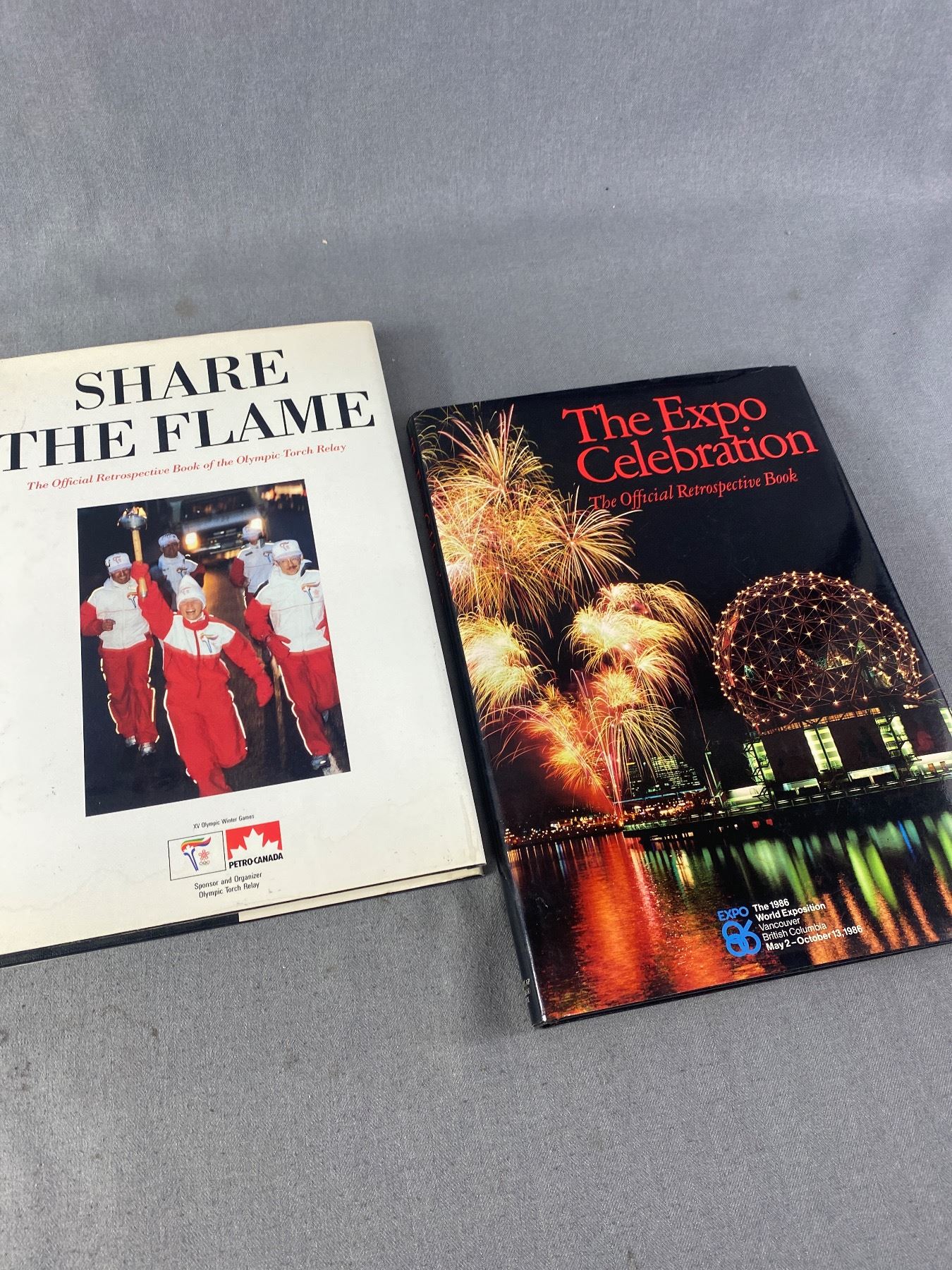 2 Hard Cover Books - 2010 Vancouver Olympics "Share The Flame" & 1986 Vancouver "The Expo Celebration"