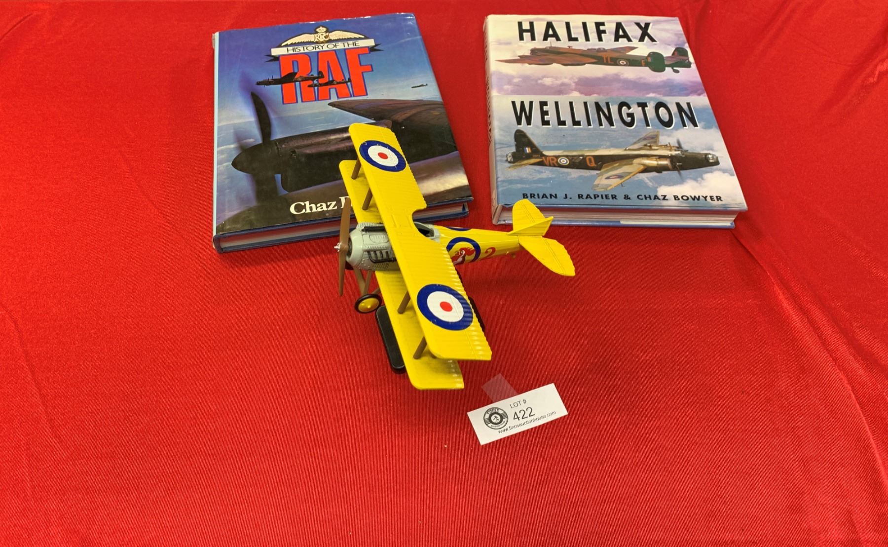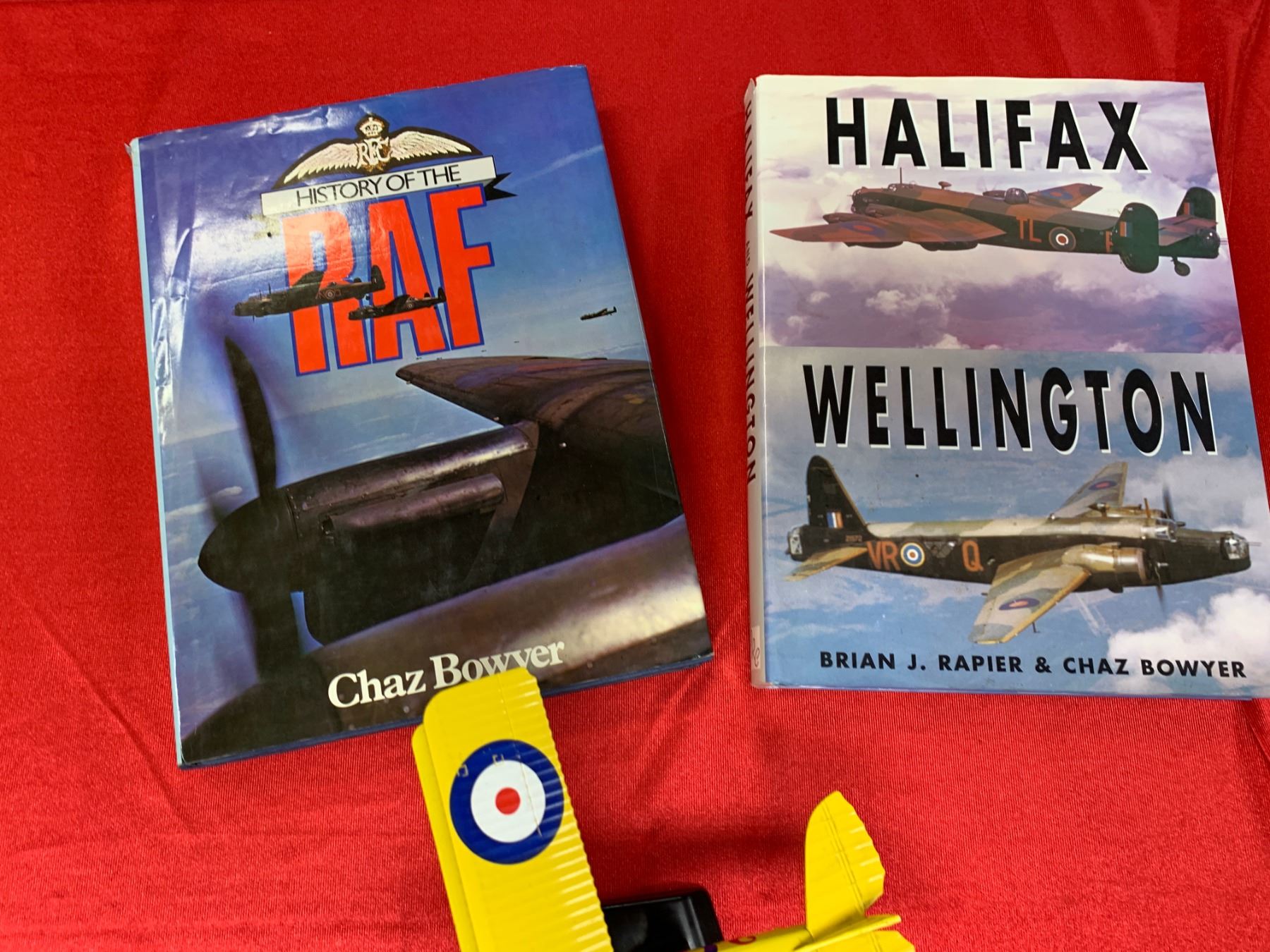 2 Hardcover Airplane Books. 1 RCAF + a Model Airplane on a Stand