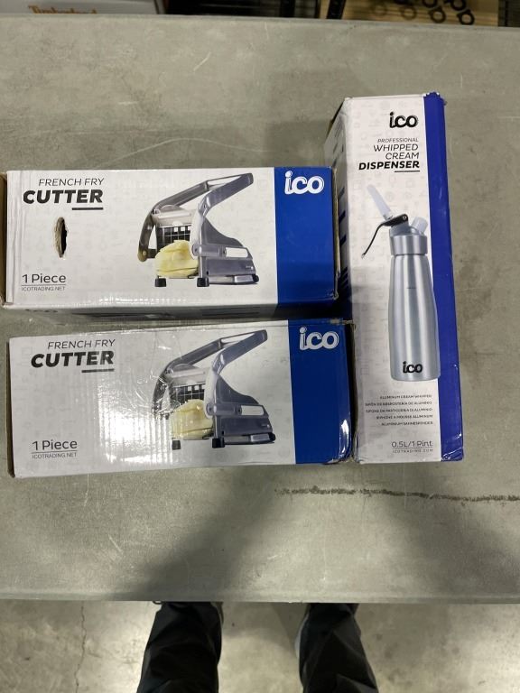 2 ICO FRENCH FRY CUTTERS AND WHIPPED CREAM DISPENSER
