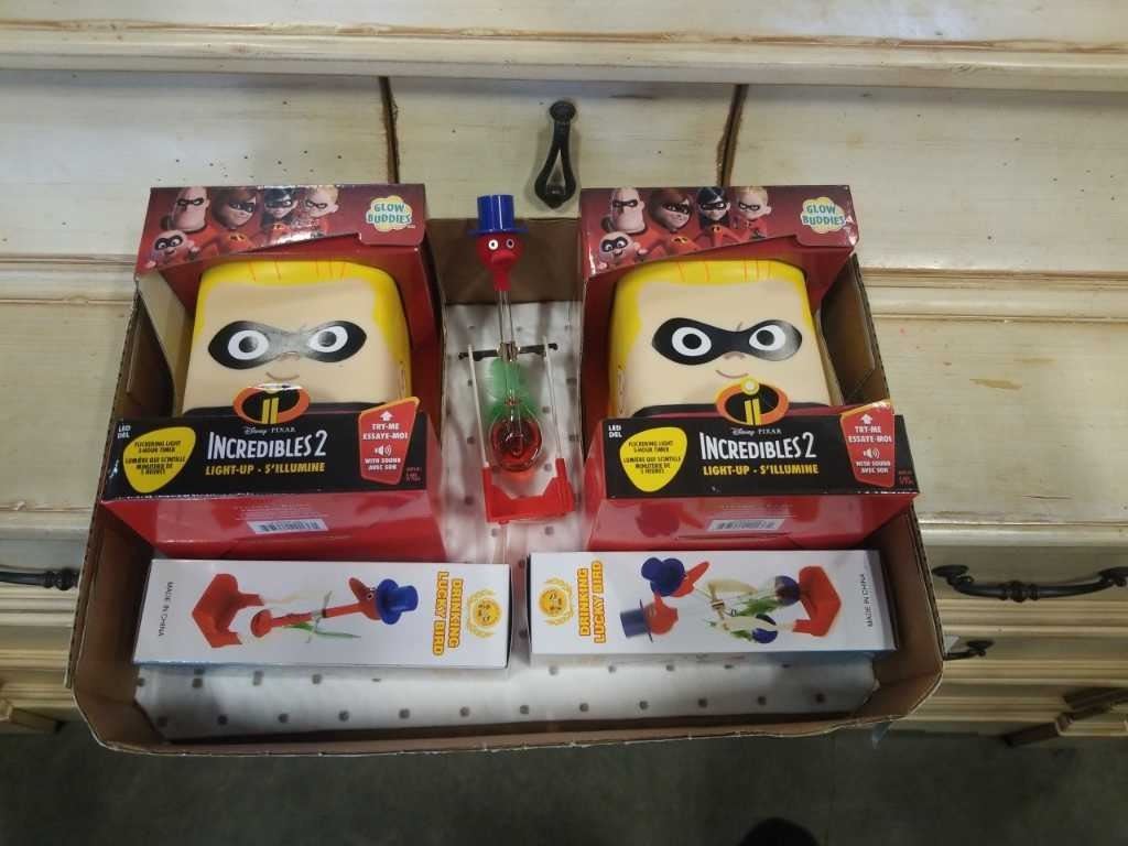 2 INCREDIBLES 2 GLOW BUDDIES FIGURES AND DRINKING BIRDS