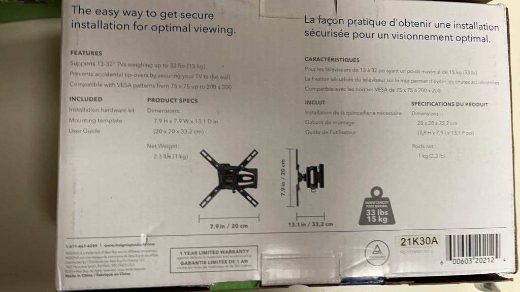 2 INSIGNIA FULL MOTION 13"-32" WALLMOUNTS