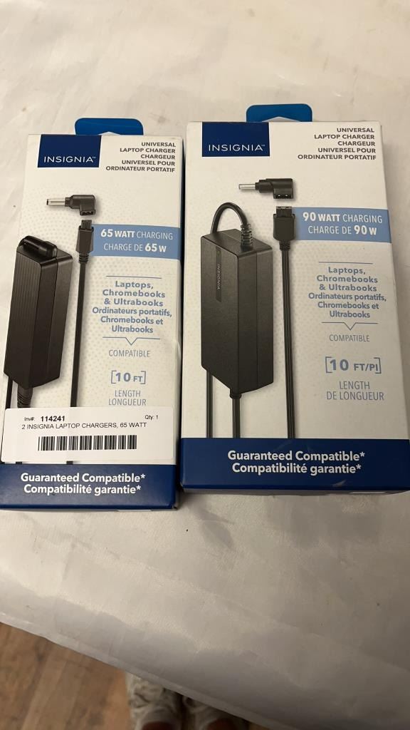 2 INSIGNIA LAPTOP CHARGERS, 65 WATT AND 90 WATT