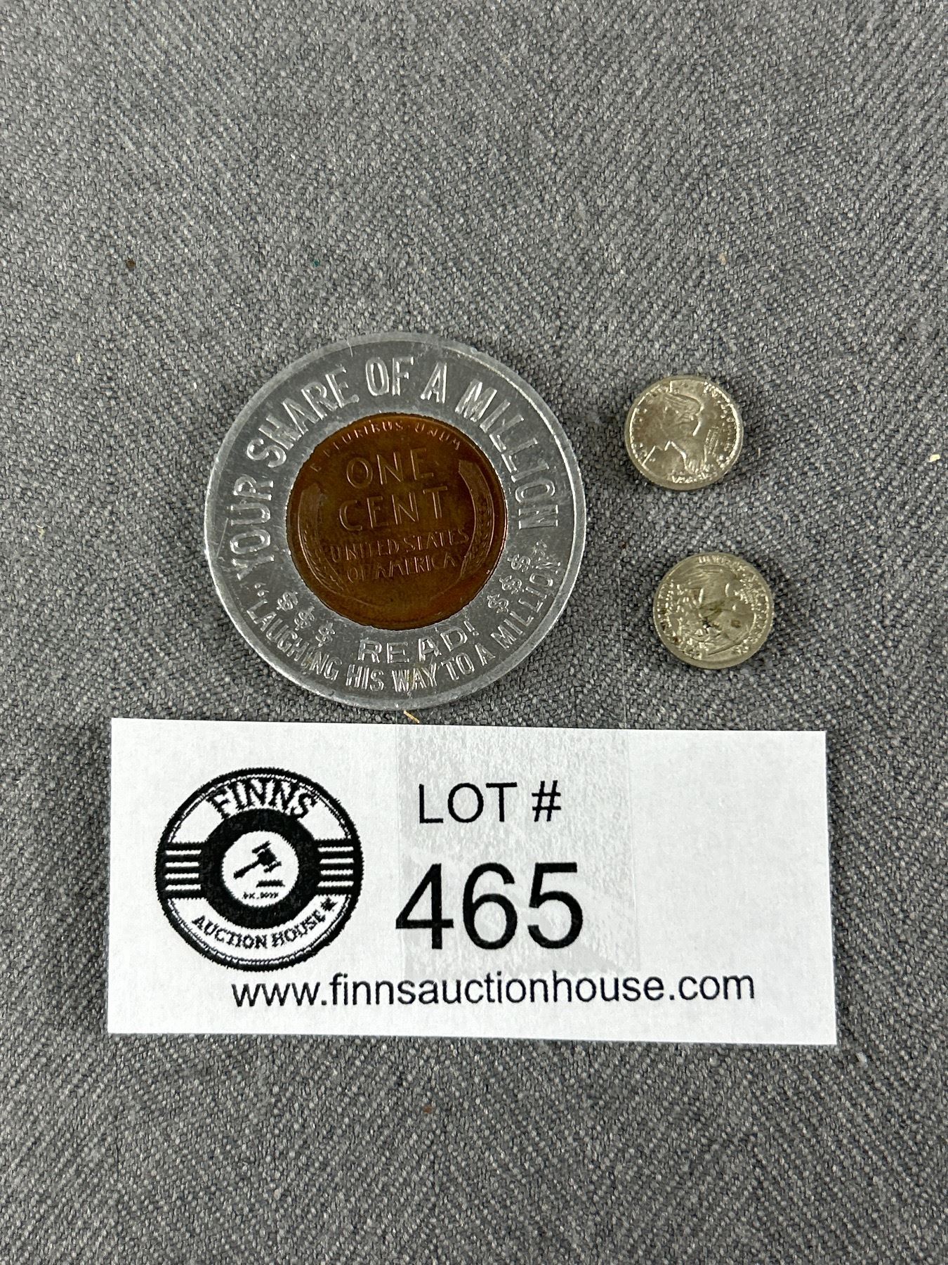 2 Interesting Micro US Coins & Keep Sake US Penny Coin