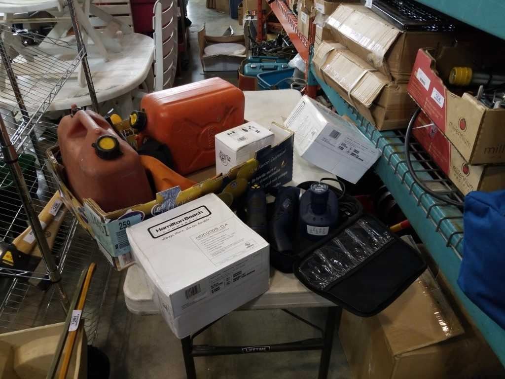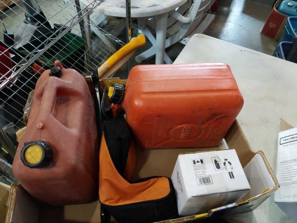 2 JERRY CANS, COFFEE MAKERS, ETC
