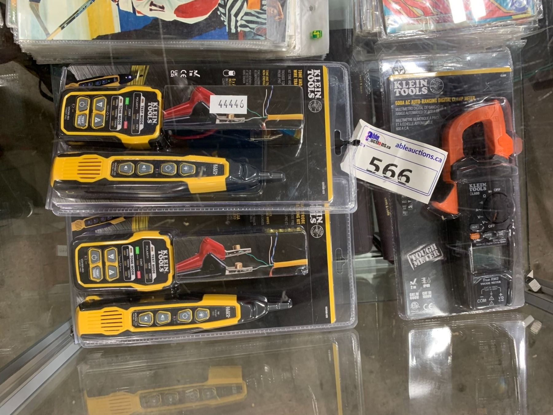 2-KLEIN TOOLS TONE & PROBE WIRE TRACKING KIT & KLEIN TOOLS 600A AC AUTO DIGITAL CLAMP METER