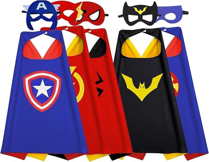 Kids Costumes 5PCS Superhero Capes Set and Slap Bracelets for Boys, Girls Dress Up Party Favors
