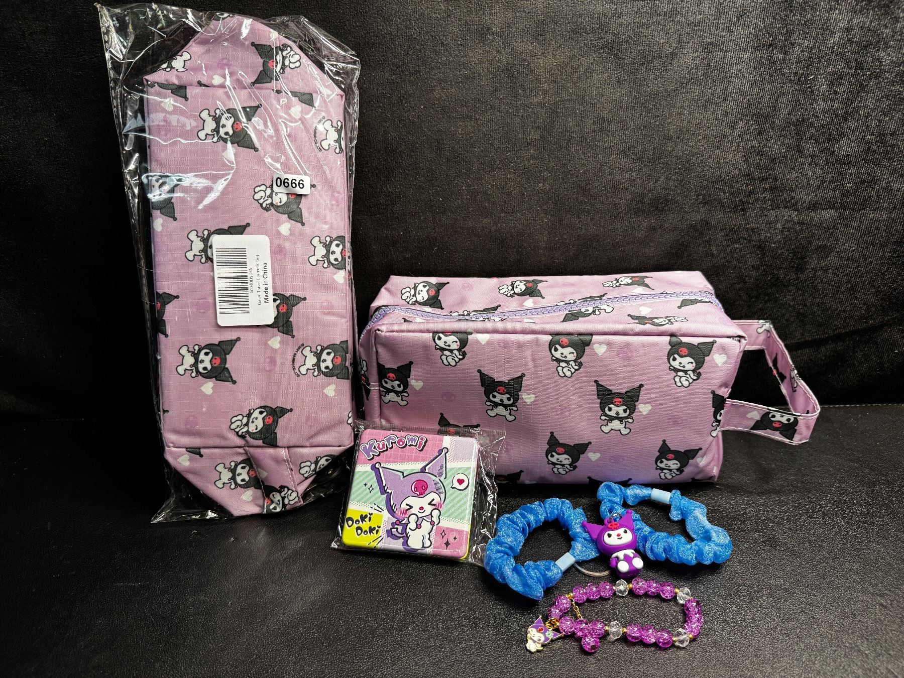 2 Kuromi 6PC Kawaii Cosmetic Bag Sets with Accessories - Brand New!